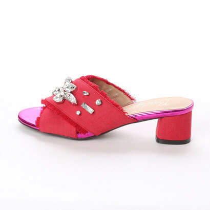 キラキラ輝く大き目のビジューデザインがインパクト大なクロスベルトミュール。