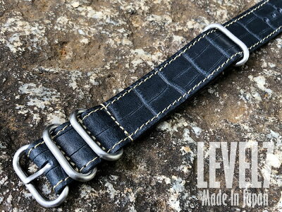日本製 ハンドメイド ラグ幅20MM/22MM/24MM/26MM対応 パネライ スタイル ワニ柄 クロコダイル型押し オイルレザー ヌメ革 ZULU/NATO レザーベルト 4リング 腕時計 替えベルト SP-ZULUSS-VICROCO-BL LEVEL7