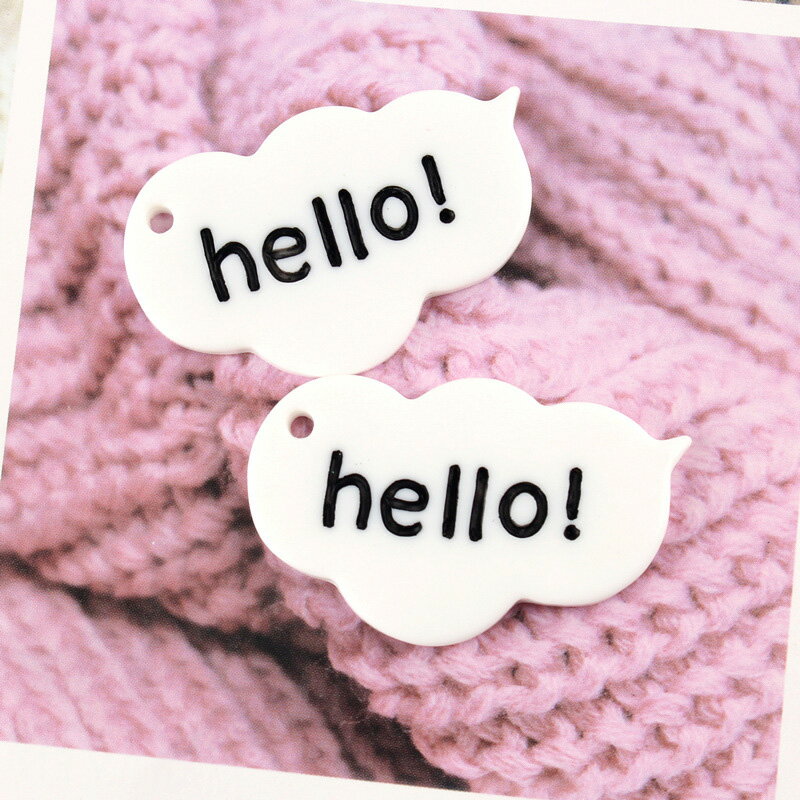 穴開きふきだしアクリルパーツ(hello)/1個販売 メッセージ 英語 おもしろ ユニーク 面白い 個性的 アクセサリー ピアス パーツ イヤリング 貼り付け マグネットピアス チャームパーツ ハロー 挨拶 こんにちは 穴あき 白色 ホワイト メンズ レディース 揺れる セリフ 台詞