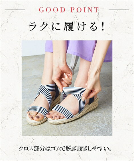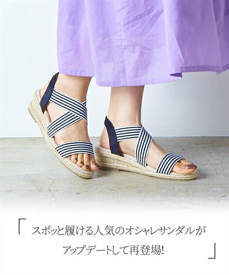 他のサイズは以下をご覧ください 23.0〜23.5/24.0〜24.5cm はこちら 26.0〜26.5cm はこちらクロスゴムサンダル(低反発中敷)(選べるワイズ) ニッセン nissen 黒 ネイビー 赤 キャメル シルバー モカ パープル グリーン ピンク ネイビーボーダー カラー 黒/ネイビー/赤/キャメル/シルバー/モカ/パープル/グリーン/ピンク/ネイビーボーダー サイズ LL・25.0~25.5cm/4E/LL・25.0~25.5cm/5E 素材 材質=ポリエステル(ゴム部分)・ポリエステル(スエード調) 底材=合成底 底の厚さ(前)=約1cm 底の厚さ(後ろ)=約5cm ワイズ=4E,5E 甲ベルトはゴム仕様 つま先側のベルトは伸びません 原産国 中国製 メーカー品番 ZZY4320B1163 コメント スポッと履ける人気のクロスゴムサンダルがアップデートで再登場です!人気のヒミツの伸びるゴムの履きやすさにプラスして、前ベルトの裏側を足あたりの良いメッシュ仕様にグレードアップ。