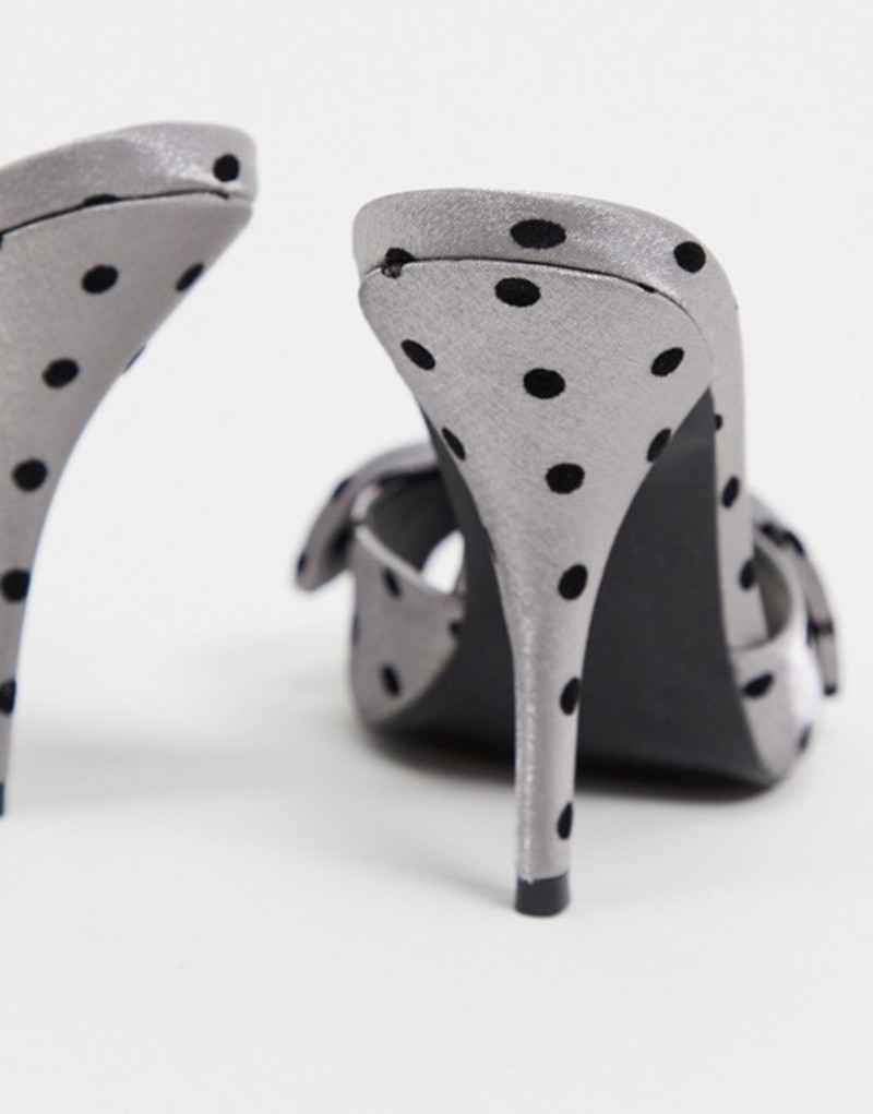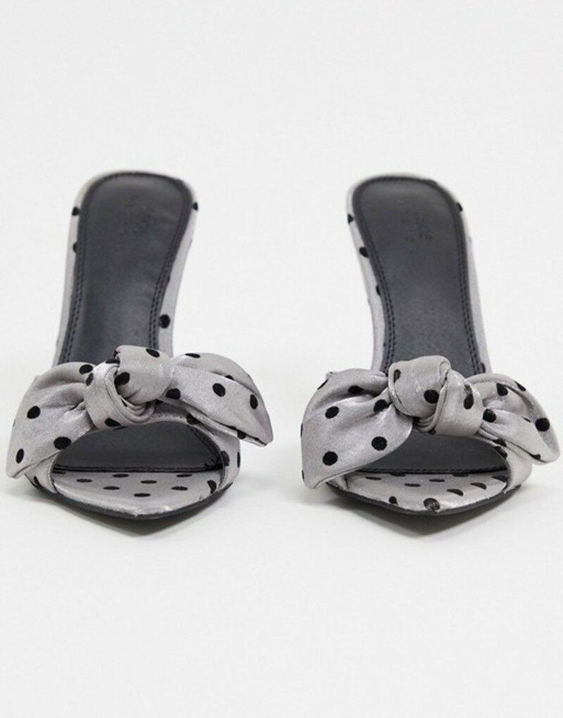 エイソス レディース サンダル シューズ ASOS DESIGN Nester bow mules sandals on pointed insole in silver polka dot Silver polka dot