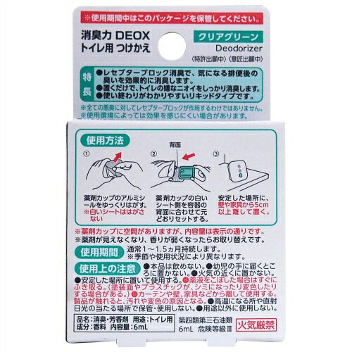 【送料込・まとめ買い×40個セット】エステー 消臭力 DEOX デオックス トイレ用 つけかえ クリアグリーン 6ml 1個