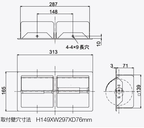 2連 ダブル ペーパーホルダー トイレ トイレットペーパーホルダー アンティーク トイレペーパーホルダー ペーパーホルダーカバー ロールペーパーホルダー(ヨコ 2連 埋込型):HR-Rr298c6