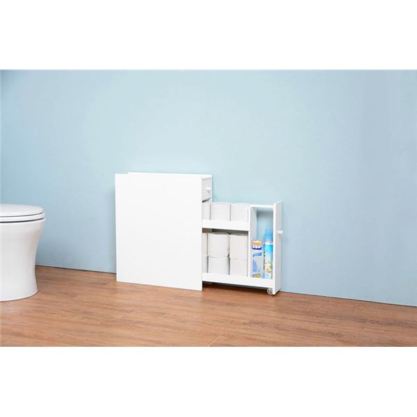 【送料無料】コンパクト トイレラック/お手洗い収納 【ホワイト】 幅14×奥行50×高さ58.5cm 〔御手洗い レストルーム〕【代引不可】