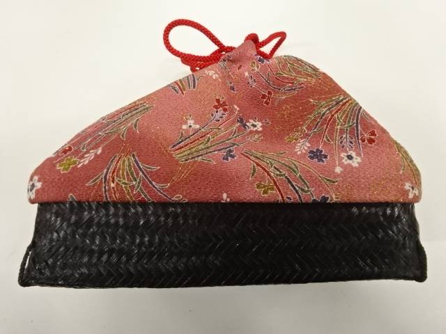 【茶道具・茶道・着物】縮緬地草花模様竹籠巾着【リサイクル】【中古】【着】 宗sou