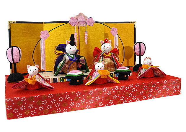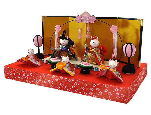 【ポイント最大44倍】ミニ雛 節句 雛人形 ひな人形 脇飾り お祝い コンパクト 開運 猫 ちりめん 五人飾り コンパクト E053 開花猫雛五人揃 楽ギフ_のし