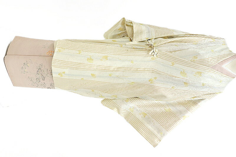 商品詳細 ■素材 ・正絹 ■詳細 ・高級ちりめん ・紋紗 ・友禅ぼかし染 ■縫製 ・単衣仕立て ・広衿 ・手縫い仕立て ■カラー 地色:オフホワイト 差し色:黄土色 グレー ■合せる着物 訪問着 付け下げ 色無地 小紋 紬 薄物 3月〜11月頃にかけて着られるお着物に ■着用シーン お買い物 お食事会 ランチ パーティー デート 観劇 映画鑑賞 など 状態 ■新品・仕立て済み 染め上がったばかりのお品を当店にてお仕立て致しました。