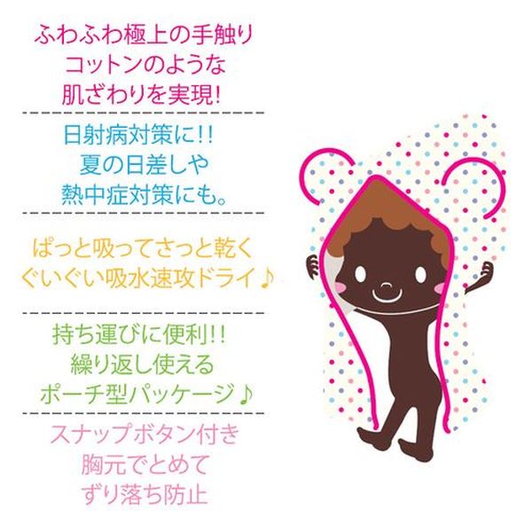 ●吸水性抜群なので、お風呂上がり、海やスイミングなど様々な場面で大活躍。