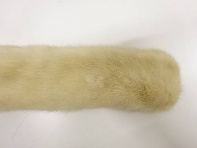 <生地サイズ>(単位:cm)長さ(縦)100幅(横)7 状態 非常によい 素材 ミンク 色目 ベージュ 【商品説明】裏地にほつれが有ります。