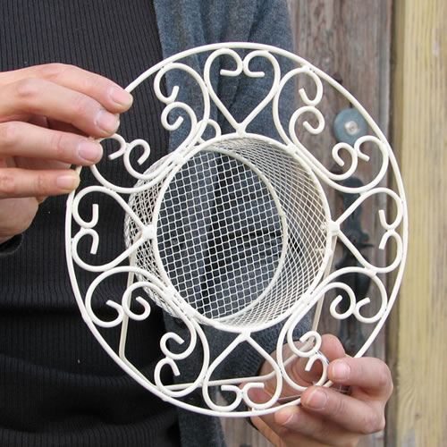 また後ろについている穴にネジ釘やS字フックなどを 引っ掛けると、ハンギングとしてフェンスや門扉・ラティス・塀・壁などにアク セントの花飾りとして楽しむ事も可能です。