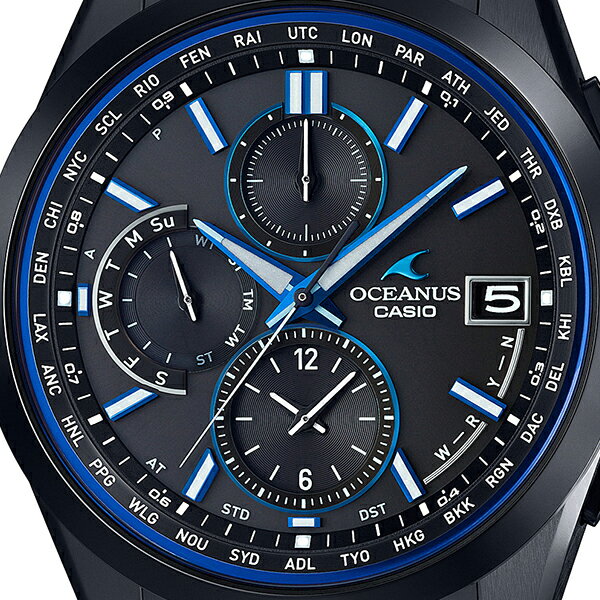 ベースモデルのOCW-T2600は、12時間計のインダイアルでワールドタイムを表示するデュアルダイアルワールドタイムを搭載。