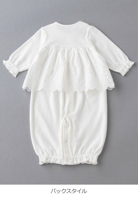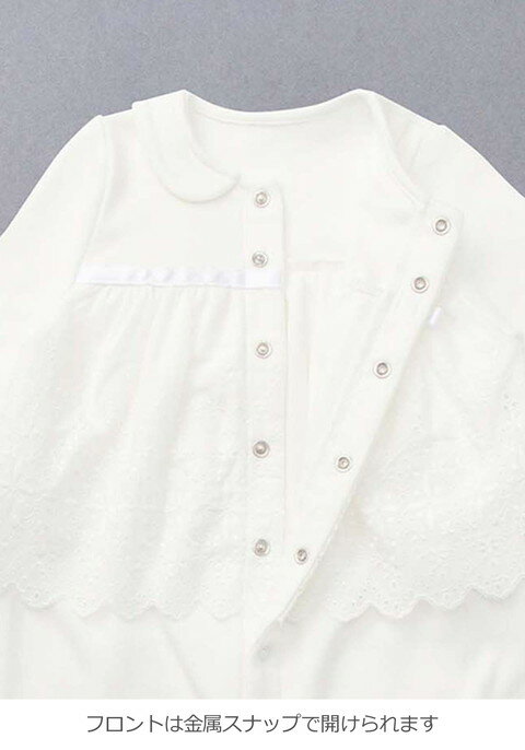 【日本製】【Boribon oeuf】コットンレース セレモニードレス ツーウェイオール 前開き 女の子 ベビー服 白