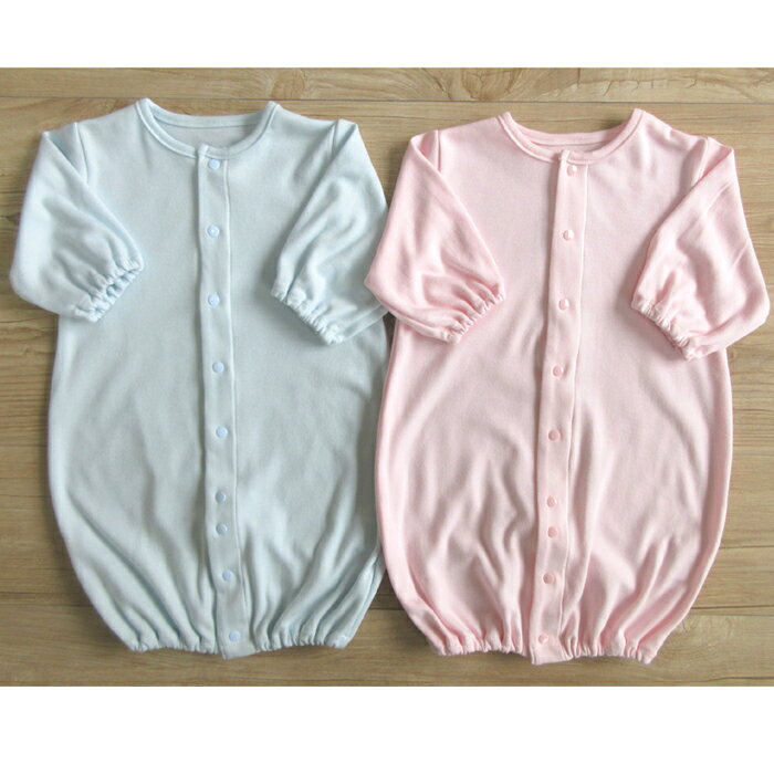 【日本製】オーガニックコットン100% ツーウエイオール ピンク・サックス 新生児 出産準備品 無地 ドレスオール