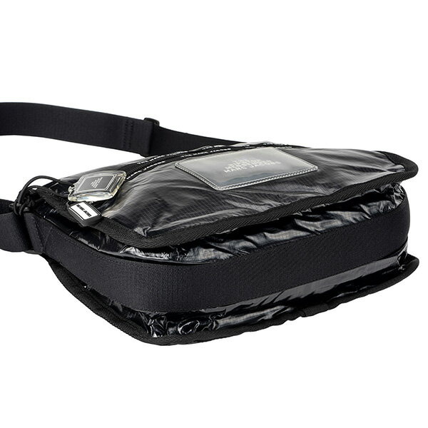 内外に複数のポケットを備えた使いやすさに加えて、光沢のあるボディに商品名を記載したパッチが存在感を放つデザインも魅力。