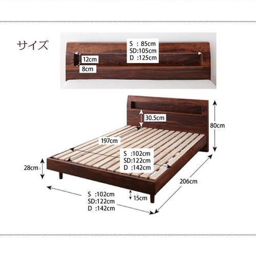 ベッド セミダブル ローベッド ロータイプ 低い フロアベッド 低床 棚 ラック 宮付き 枕元 携帯 スマホ ティッシュ メガネ リモコン コンセント 充電 すのこ フレーム 北欧 おしゃれ モダン ヴィンテージ メンズ 脚付き 足付 ルンバ 土台 SポケットCマットレス付き