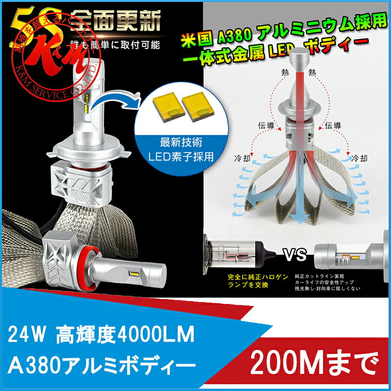 LEDヘッドライト 2個入り LED H4 HI/LO H7 H8 H9 H10 H11 H16 HB3 HB4 H1 H3 6500K(車検対応) 4000LM LED ヘッドライト ヒートリボン採用で放熱効果UP 12V 24V バイク 対応 1ヶ月保証