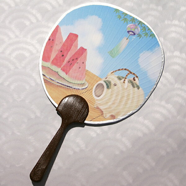 うちわカード スイカと豚蚊取り 草花【メール便対応商品】暑中見舞い 残暑見舞い うちわ 団扇 カード 手紙 ハガキ はがき 季節の便り 夏 涼しい 郵送 サマーカード 定型郵便