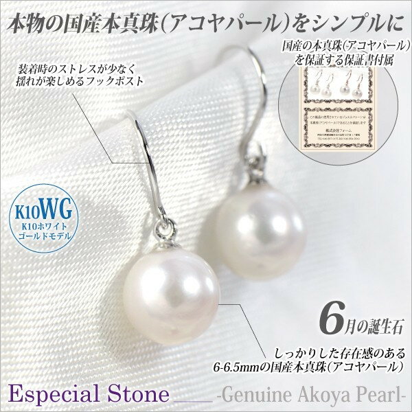 あこや真珠 ピアス K10 ホワイトゴールド K10WG 両耳用 6mm 珠 本真珠 シンプルフック 送料無料 パール ピアス fourm クリスマス 母の日 レディース メンズ 男性 女性 ラッピング 包装 袋 誕生日 プレゼント ケース 箱 華奢 可愛い おしゃれ 手紙 ギフ