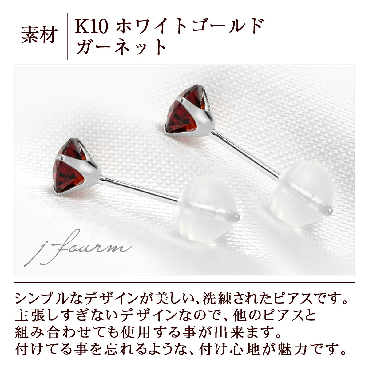 ガーネット ピアス K10 ホワイトゴールド レディース 両耳用 送料無料 誕生石 4mm レッド 赤 fourm クリスマス ギフト 母の日メンズ 男性 女性 ラッピング 包装 袋 誕生日 プレゼント ケース 箱 華奢 可愛い おしゃれ 手紙 記念日 お揃い 母