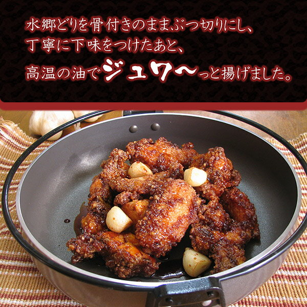 【asrk_dkn】 お支払い方法は? 送料はいくら? 荷物の包装は? 日時指定はできるの? まだまだあります!鶏料理コーナーはこちらをクリック!>>>水郷どりを骨付きのままぶつ切りにし、丁寧に下味をつけたあと、高温の油でジュワ〜っと揚げました。