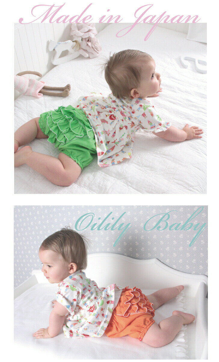 公式【オイリリー OILILY】フリルブルマ★3色展開 ピンク/グリーン/オレンジ 日本製 【70/80cm】赤ちゃん お尻ふりふり 出産祝い 退院 ギフト おしゃれ かわいい 春夏 秋冬 綿100% 喜ばれる プチギフト プレゼント 【ゆうメール可】