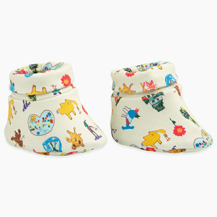 見ているだけで笑顔になれる本当に楽しい落書き!!赤ちゃんのお出かけに、お家でくつろぐ時にといろいろと活躍するルームシューズです。