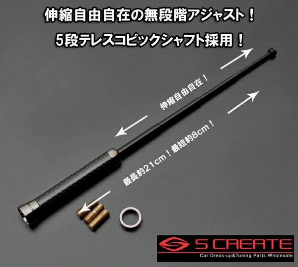 商品詳細 本物カーボン使用!伸縮ショートアンテナ!激渋です! 人気沸騰中の《ブラックメッキタイプ》 ■メーカー SCREATE ■カラー:ブラックカーボン×ブラックメッキ ■カーボン伸縮ショートアンテナ (本物ドライカーボン使用!偽物とは色、質感が違います!) ■伸縮無段階アジャスト5段階テレスコピック採用ですのでご希望の高さに調整可能になりました! ■8cm〜21cmの長さにお好みに応じて変更できますので市街地はショートに、山間部や、電波の悪いときにロングにと場所や、気分によって変更できます! ■ベリーショートタイプのアンテナにすることにより、スタイリッシュになります! ■立体駐車場での車庫入れもアンテナを気にせず車庫入れができるようになります! ■取付けも簡単!ネジ式ですので回して付け替えるだけ! ■純正のアンテナをカーボンショートアンテナに換えるだけで激渋に! ■ショートながら通常問題のない受信感度を実現しました。